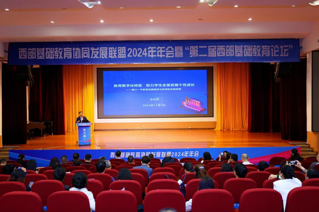 11月1日-3日,西部基础教育协同发展联盟 2024年年会暨“第二届西部基础教育论坛”在西南大学圆满召开。此次盛会吸引了众多教育界专家和学者,共同探讨了西部基础教育的未来发展路径。宁夏银川一中校长张永宏受邀出席,并发表了题为《教育数字化转型,助力学生全面个性成长》的主题报告,分享了学校在智慧校园建设方面的宝贵经验和成果,赢得了与会代表的高度评价和赞誉。