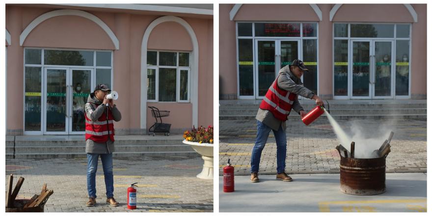在专业人员的指导下,部分学生亲身实践,使用灭火器成功扑灭了模拟火焰。