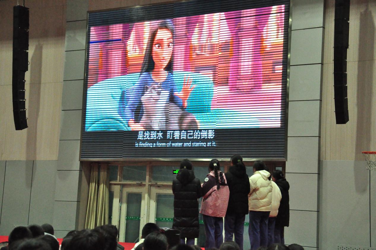 12月23日下午,英语周开幕式暨英语配音大赛在体育馆顺利举行。各班同学精挑细选经典英文电影的璀璨片段,为其中的角色、旁白配音。当灯光聚焦,画面流转,选手们仿若化身为影片中的灵魂人物,纯正流利的英语台词如灵动音符般倾洒而出。精准的发音、自然的语调,配合着默契十足的团队协作,使得声音与画面丝丝入扣,完美融合。