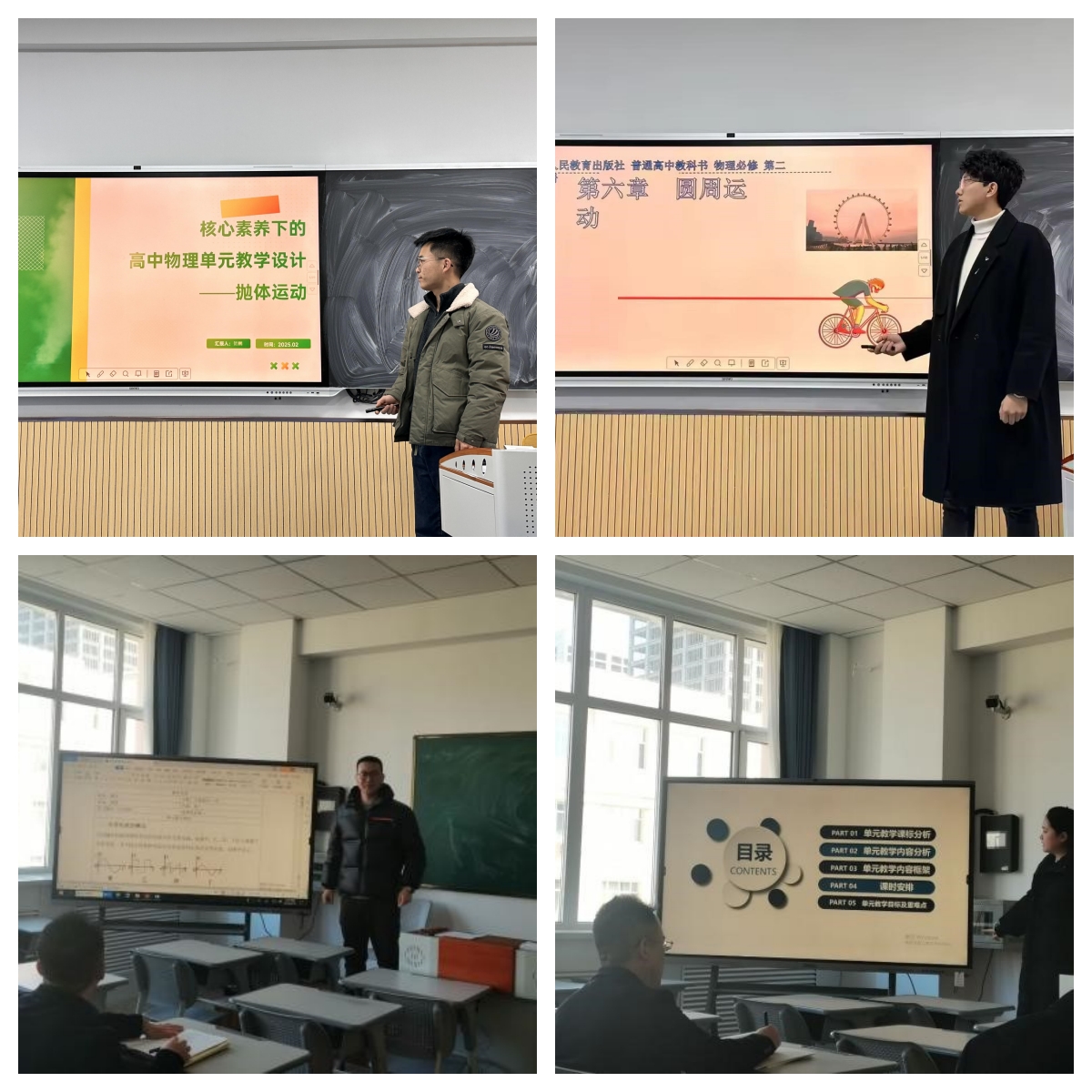 物理组:贺鹏老师首先从核心素养的角度讲述了传统教学模式的局限性与单元教学设计的优势。杜宇晨老师围绕大单元教学理念,深入探讨其在圆周运动教学中的实践与应用。大单元教学强调以核心素养为导向,打破传统课时限制,注重知识的整体性与结构性。梅杰老师从单元教学规划系统深入分析了交流电的知识结构,详细梳理了其核心概念、基本原理和实际应用,突出了其在培养学生科学思维、实践能力和创新精神方面的育人价值。戴蕾老师从电磁振荡的课标要求与教材内容分析出发,详细分解了教学任务。高三二轮复习大专题—《力与运动》大单元设计进行研讨,本大专题设计分为:《力与平衡》、《力与直线运动》、《力与曲线运动》三大板块,老师们针对这部分内容进行研究。