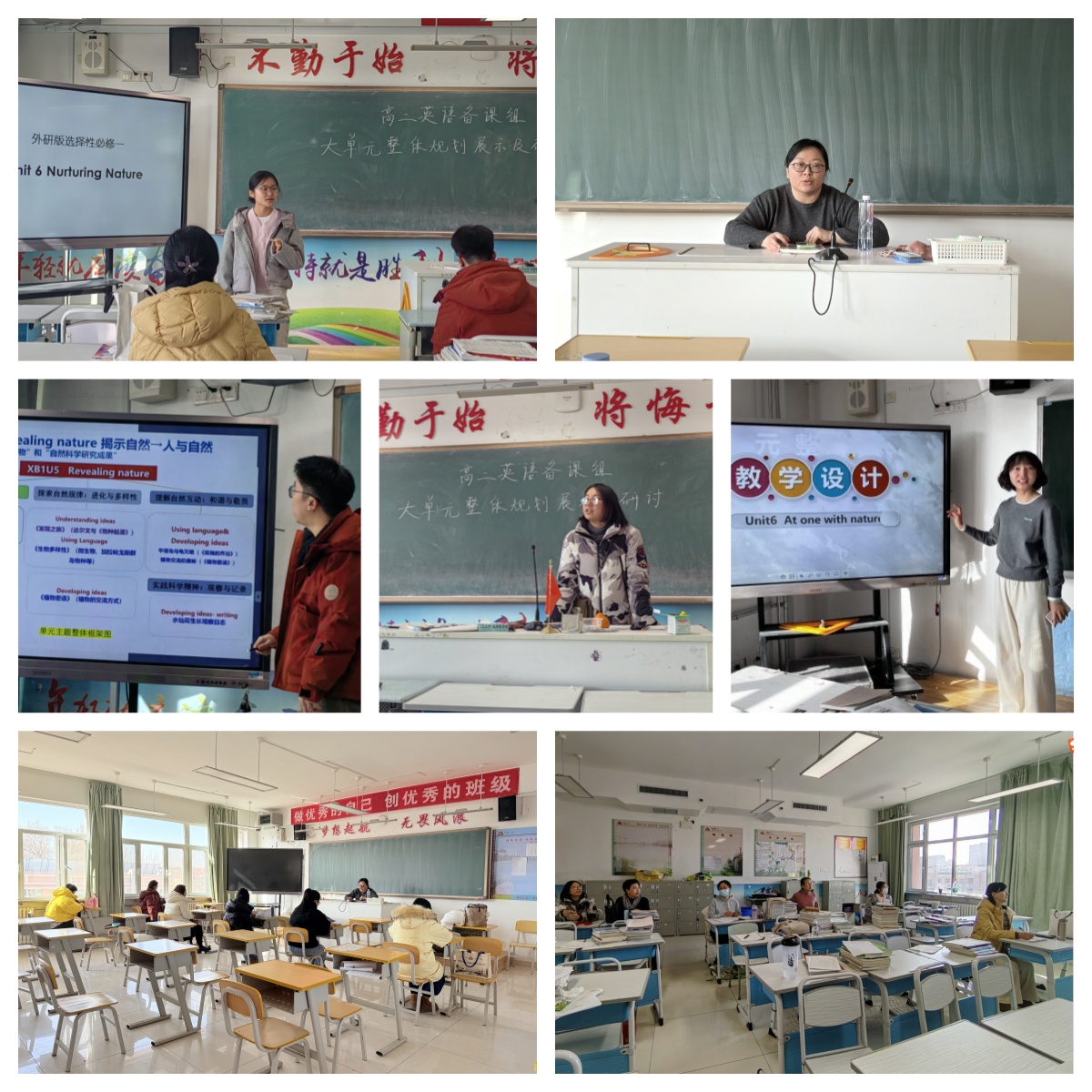 英语组:高一张洁老师汇报了必修一第六单元“人与自然”教学设计的优化方案。此次汇报旨在通过主题融合、策略升级与技术赋能,深化课程改革,落实学科核心素养,实现知识学习与价值引领的双重目标。高二年级由毛聪老师和马花老师以大单元教学规划入手,分享选择性必修一unit5和unit6的单元规划。毛老师以选择性必修一第五单元为例,分别从阐明单元设计指导思想和设计理念;搭建单元内容框架并确定单元教学目标;确定课时目标,设计教、学、评一体化活动三个方面为我们详细分享了如何将思维型教学理论运用在日常的英语教学中。马老师以选择性必修一第六单元为例,分别从分析单元主题和内容,提炼各子主题所承载的主题意义;关联单元内容和主题意义,提炼单元主题大观念和语言大观念;根据主题和语言观念,制定单元和课时教学目标;进行单元整体教学活动等四个方面向我们展示了如何实施大单元教学。备课组长刘安琪老师认为毛老师以王蔷教授理论为指导,将理论运用到实际教学中,体现了实用性,理论与实践完美的结合起来。马老师从表格出发,层层递进,小观念组成大观念,体现了英语学科核心素养。高三年级备课组长周靖涛老师围绕教学设计与实施策略作了分享。她强调,教学中要扎实抓好单词和句型的基础训练,灵活运用ai技术丰富教学资源,同时关注学生心理健康,根据班级特点选择适合的教学方式,并呼吁教研组团结协作,共同提升教学质量。此外,周老师还分享了以“定语从句”和“个人成长”为主题的读后续写教案设计,详细说明了不同课时的具体要求与时间安排,为教学实践提供了清晰的指导框架,为优化大单元教学提供了宝贵的经验与启示。