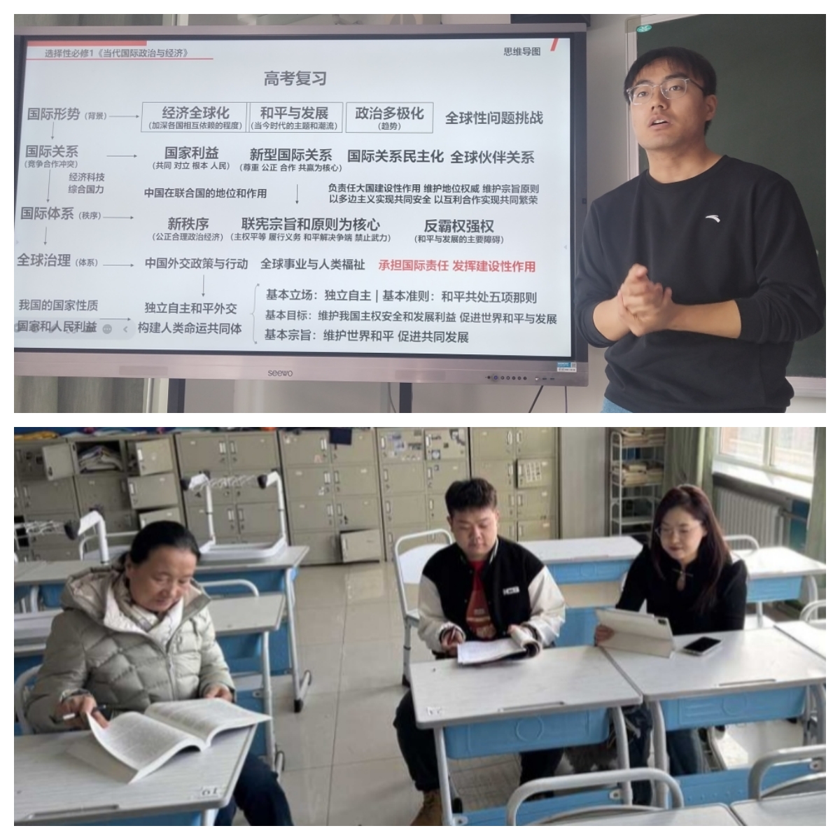 政治组:高一政治备课组围绕必修三《政治与法制》第一、二单元的大单元教学进行了深入研讨。马苗苗老师详细分析了第一单元中国特色社会主义政治制度”和第二单元全面依法治国”的核心知识点,结合新课标要求,探讨了如何通过案例教学、情境创设、小组合作等方式增强课堂互动性和学生参与度。高二年级思想政治备课组结合新学期教学计划,深度讨论了选择性必修一第三、第四单元的大单元教学策略。欧凯老师对第三单元《经济全球化》进行了大单元教学策略分享。司钰老师对第四单元《国际组织》进行了大单元教学策略分享。高三政治备课组,王刘老师以选择性必修一《当代国际经济与政治》为内容,介绍了第二单元——世界多极化格局大单元教学设计思路,王刘老师深度分析了教学内容的学科价值,以课标要求依据进行整体梳理,以学情为基础进行迁移整合,以素养为目标进行情境设计,以逻辑为线索进行整体建构。融入热点,锚定高考备考,思路清晰,预期效果良好。