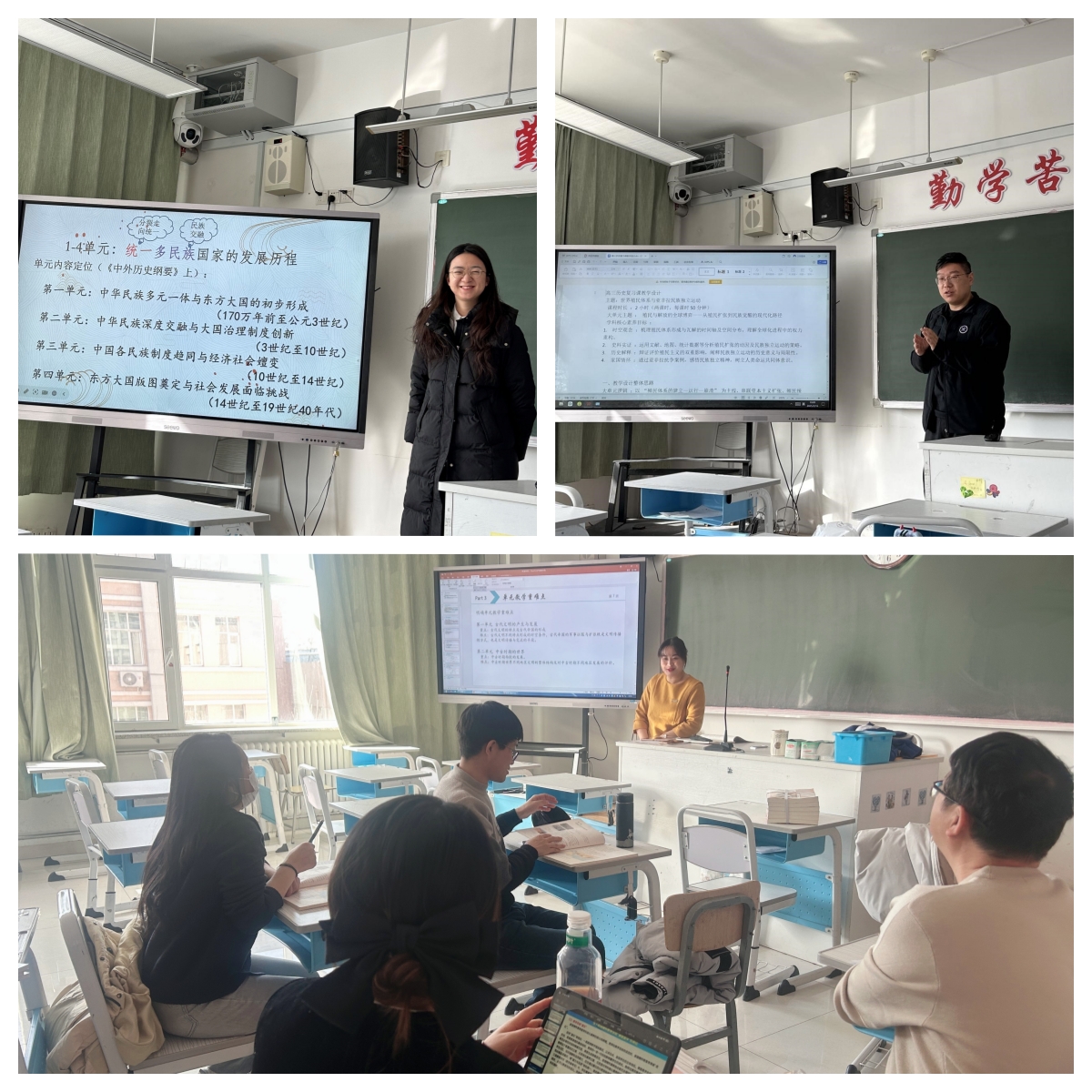 历史组:高一历史备课组在组长李锋老师的主持下,展开大单元整体教学设计展示分享活动。白莹莹老师围绕着“单元教学设计”主题,从“单元教学主题”、“单元教学目标”、“单元教学重难点”、“单元教与学的设计”及“课例展示”五个方面进行分享。高二备课组对选择性必修二第二和第三单元的大单元设计进行了交流。马建云老师从课程标准出发,明确了第二单元的教学目标与核心要求,为教学提供了清晰的依据。他对比了新旧教材的知识点,梳理了二者之间的联系与差异,可以更好地把握教材的变化与重点。同时,结合学业质量标准强调了学生在学习过程中需要达到的能力与素养目标,确保教学与评价的一致性。顾丰老师以“商业贸易与社会联动变化”为主题,结合课程标准设计了第三单元的教学内容。她从“人工智能迅速发展的时代,学生为什么要听你讲课?”这一问题出发,反思了教师的角色与教学价值。顾老师提出,教师应从“知识传授者”向“生成性引导者”转变,通过不断学习与整合知识,提升课堂的思考力与生成性,使课堂更具吸引力与启发性。高三年级历史备课组刘开济老师分享了“世界殖民体系与亚非拉民族独立运动”和“世界大战、十月革命与国际秩序的演变”两个单元的教学设计,从单元教学目标、知识结构、重难点突破、史料运用、习题设计等方面进行了详细阐述。周娅茹老师以“中古时期的世界”为例,聚焦历史核心素养的落实,设计了以问题为导向的教学活动。