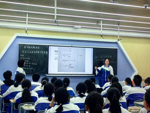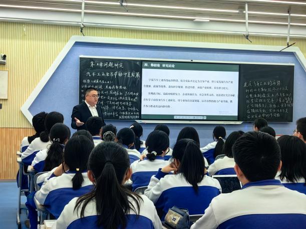银川一中的魏鹏老师以家乡汽车产业为案例,借助视频、图片等展示汽车工业发展现状,夯实学生区域认知基础。魏老师打破传统课堂空间局限,巧妙将研学活动融入课程,以真实情境激发学生学习内驱力。同时,创新性引入访谈环节,让学生通过访谈政府机关、企业代表或行业专家,在交流对话中思考核心问题。课堂上,魏老师即时对学生访谈中的典型案例展开深度分析,展现出扎实的学科功底与出色的课堂驾驭能力。