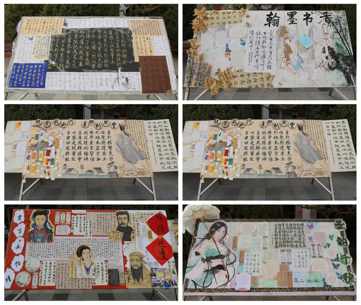 最令人眼前一亮的是,高二全体同学齐心协力,抬出了制作精美的书法作品展板。展板上,一幅幅书法作品笔力遒劲、神韵俱佳,或飘逸洒脱,或刚劲有力,将经典诗词、名言警句以艺术的形式呈现出来。这些作品不仅展现了同学们深厚的书法功底,更彰显了他们对经典文化的热爱与传承,引得师生们纷纷驻足欣赏,赞叹不已。