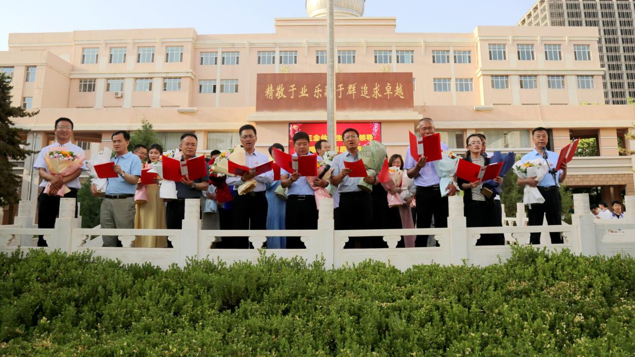 化雨无声润璞玉,秉心同契望琼章。学生代表为高三教师献花,全体校领导与师生齐唱《二十年后再相会》。