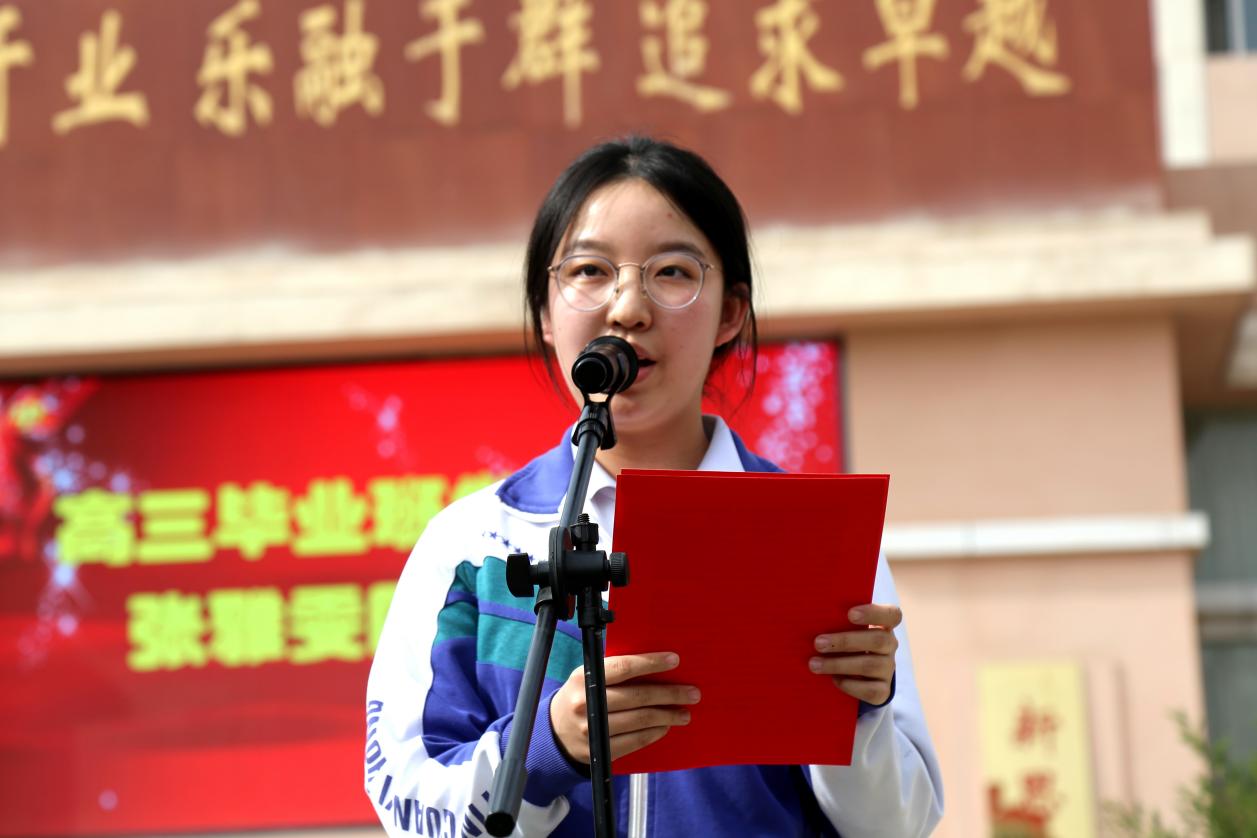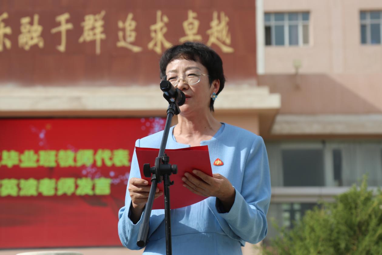 三尺讲台育桃李,一支粉笔写春秋。高三毕业班教师代表刘英波老师致辞。她用“爱”“恨”交织来形容了与学子们相伴的一千多个日夜,用幽默风趣又包含深情与牵挂的话语祝福高三学子们,希望他们志存高远,步履坚定,永葆对理想的热忱,以开阔的视野奔赴远方;以顽强姿态直面迷茫困境;把挫折当作成长养分,以自律成就精彩人生。