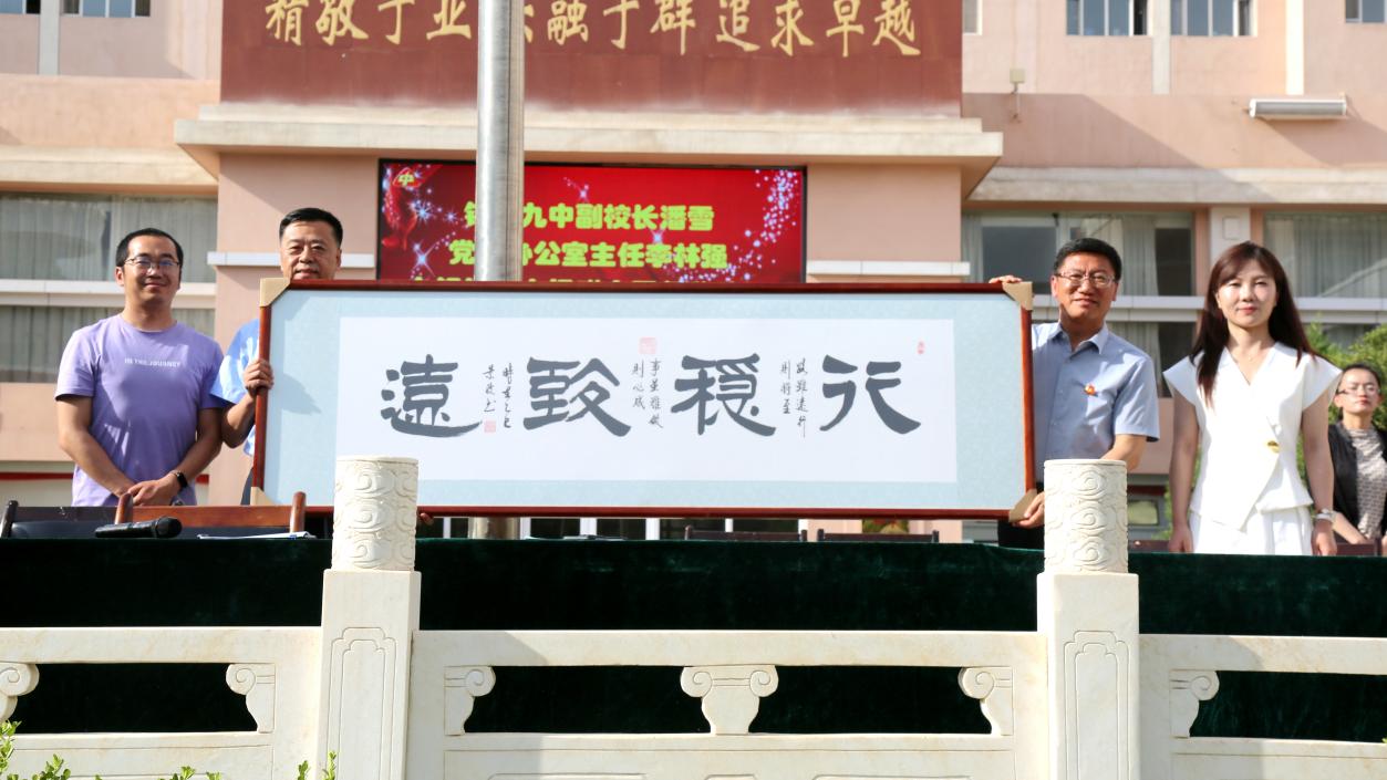 双校同心凝厚谊,两园并蒂绽繁花。银川市第九中学副校长潘雪、课程教学处副主任韩斌代表兄弟学校向宁夏银川一中赠送“行稳致远”匾额。