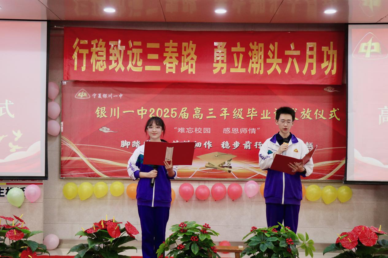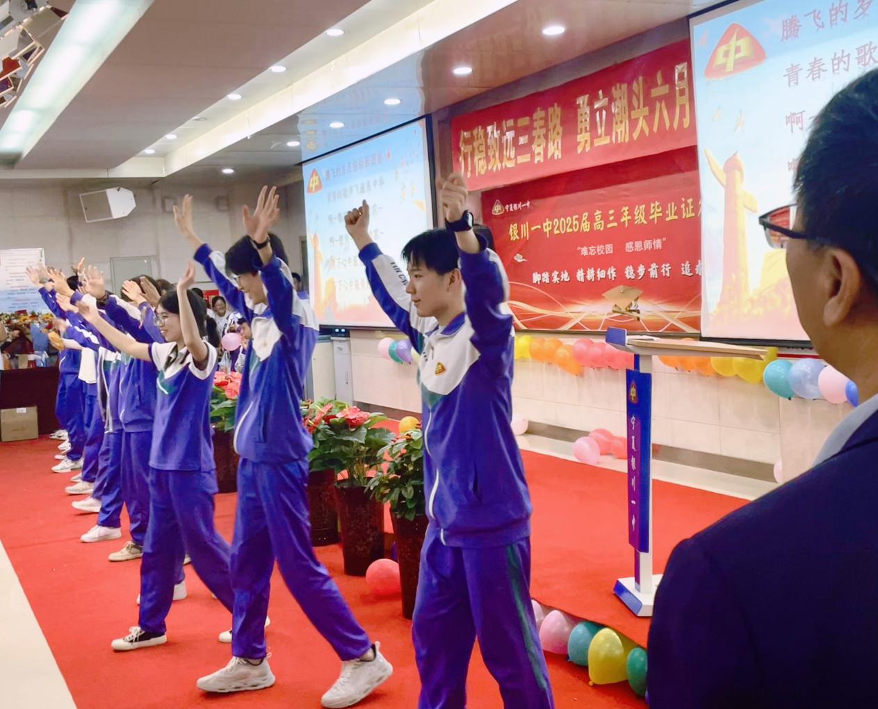 青春的音符随着指挥老师的手势漾起,在“向着太阳出发,出发,追求生命光华……”的校歌齐唱声中,有的同学红了眼眶,班主任在幕影里用指节抵住鼻尖。“尚德远志是情感的表达,求是笃行是汗水的挥洒”他们的指间还残留着习题册的墨痕,此刻却被旋律冲刷成纯粹的赤诚。随着高潮到来,独属于一中人的浪漫与归属感随之席卷会场,“银川一中我的家!”那些平日被导数、语法、诗词填满的喉咙里,正涌出带着塞上稻香的辞章。