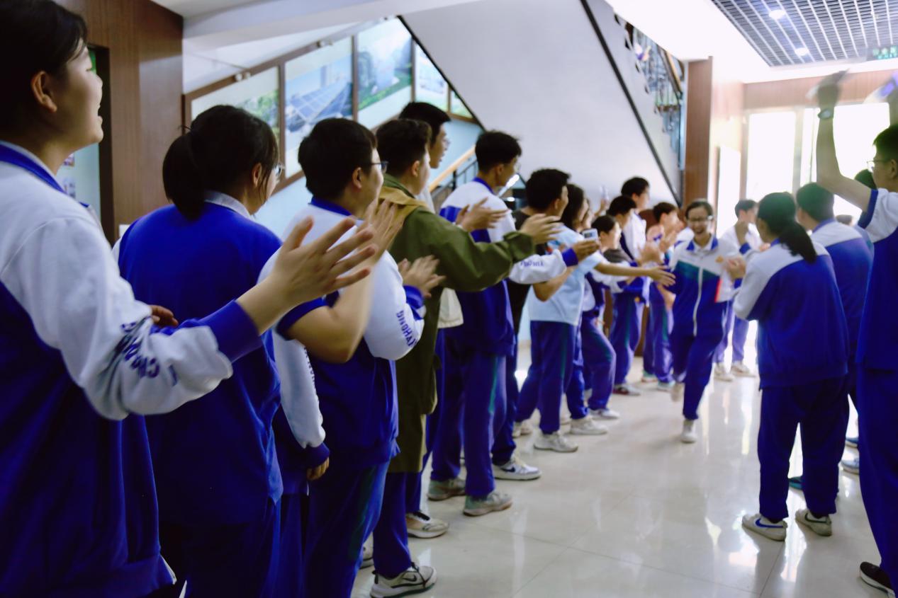 “加油!必胜!”会场外,气氛组声音炸开,像一串猝不及防的鞭炮,惊醒了深邃的走廊。高三的学子们手持教务处送上的“祈福”文具袋,像即将远行的旅人,背着希望的行囊。高一高二的学弟学妹夹道欢迎,与“出征的战士们”击掌、发糖,旋绽手中的礼花。高三学长和学弟学妹,像两片浪花在岸边相遇,又各自奔向更远的海洋。高考是一场远行,而此刻的击掌,是他们留给彼此的、最温柔的号角。