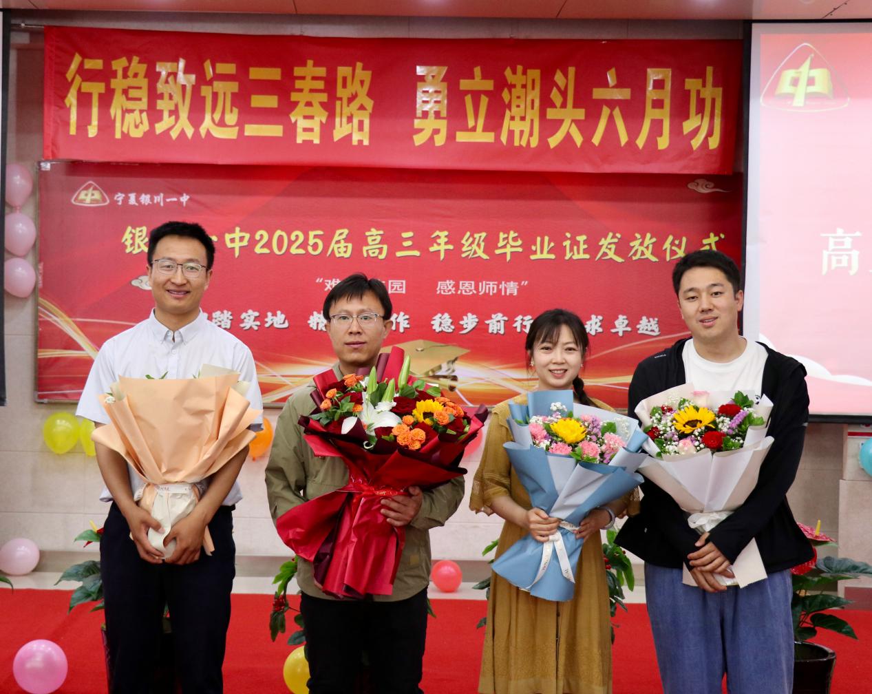 9时整,晨光已把空气烤成透明的绸缎,轻轻一抖,便漾起青春的涟漪。一中少年列队而立,“2025届高三年级毕业证发放仪式”正式开始。随着主持人激情昂扬的开场词,第一批4位优秀学生代表向校长和1-4班的班主任献上感恩的花束。校长与班主任合影,感谢奋战在一线的班主任们这三年来的倾力奉献!