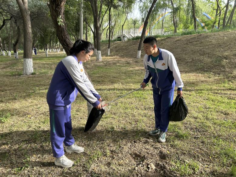 2025年5月30日下午,银川一中高一、高二17、18班四个班级的二十余名同学来到了宝湖公园,开展了以“以劳动致青春,以行动护生态”为主题的劳动教育活动。此次活动旨在通过实际行动带动和影响更多的人关注环境问题,参与到环境保护当中。
