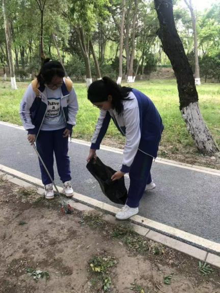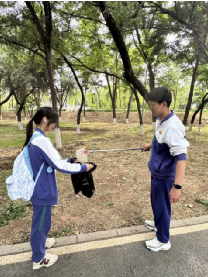 下午三节课后,同学们怀着激动的心情,在贺姗老师的带领下徒步走到了宝湖公园。大家整装待发,在老师讲解了活动的流程和注意事项后,同学们迅速分组,两至三人一组,一人拿垃圾袋,一人拿垃圾夹,迅速行动起来。各小组分散在公园的不同角落,认真的捡拾起草地上的烟头、纸屑、塑料垃圾等废弃物。大家劳动热情高涨,不放过任何一个卫生死角,身体的劳累并没有影响大家的劳动热情。