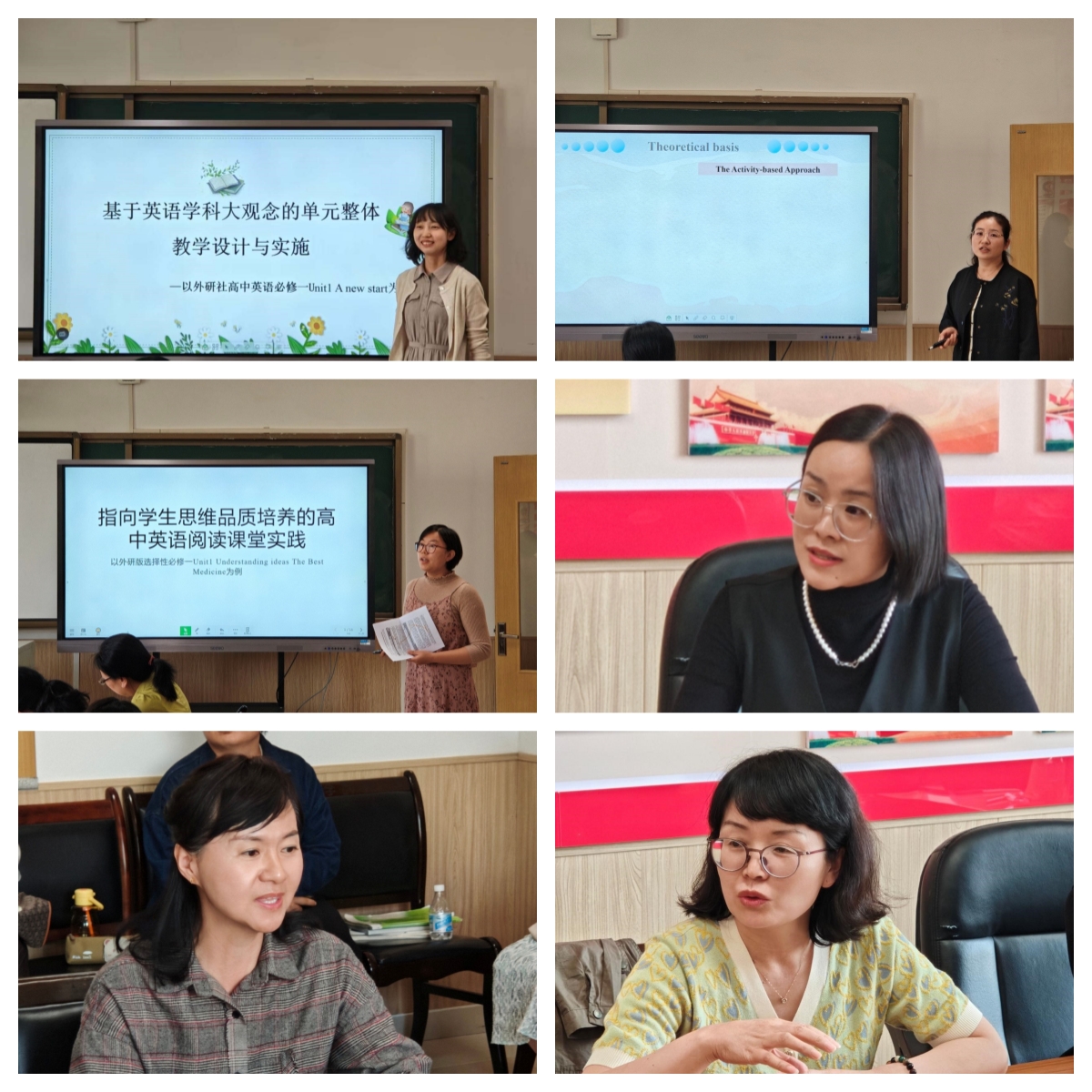英语组高一年级赵丹、张洁与高二年级刘安琪三位老师带来课例分享。张洁以英语学科大观念为引领,分享必修一unit1 单元整体设计;赵丹以英语学习活动观为视角,分享必修二 unit2 教学过程;刘安琪围绕思维品质培养,采用多种方式开展阅读教学。教研组长马慧芬强调文本分析、板书设计及问题链设计,武慧娟指出要兼顾英语学科人文性与工具性。教研室主任苏雪静肯定分享价值,同时指出缺乏提出问题环节和学生自主建构反思总结。此次活动为教师提供交流平台,指明教学方向,助力教师深入理解思维型教学,提升教学质量。