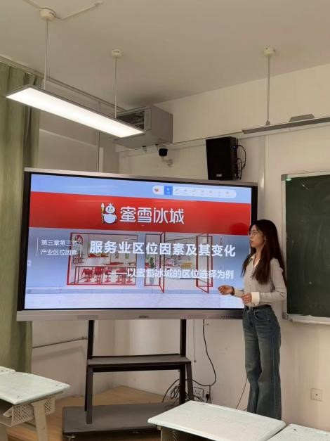 地理组杨菲菲老师主讲《服务业区位因素》。她以蜜雪冰城为切入点,用主题曲营造情境,以 “如何在银川选址开店” 问题激发探究热情,选取学校附近两家门店经营对比案例,借助百度地图热力图等工具呈现区位理论。教学中构建层次分明的问题链,运用制作对照表、公式要素拆解、实地调研、梳理发展历程等多种策略,培养学生系统、辩证、创新思维。课堂通过 “自然 - 人文” 分析框架建立区位选择模型,以案例分析培养透过现象看本质的能力,设计 “2030 年智能奶茶店” 激发创新意识。该节课将真实情境与学科思维结合,实现从知识传授到能力培养的转变,为各学科教学提供借鉴。