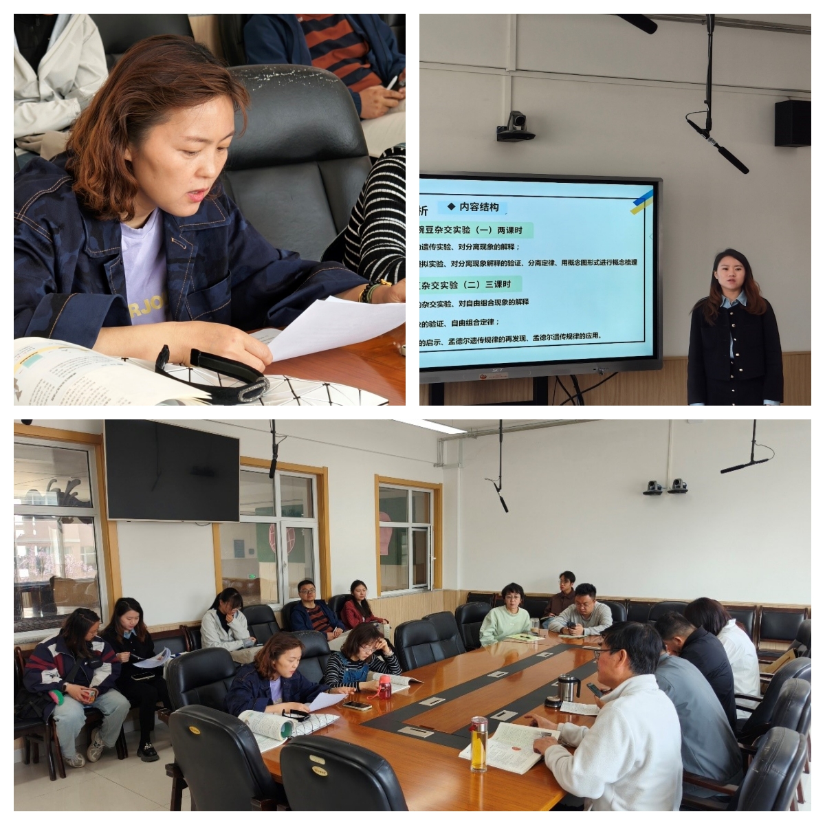生物组张媛、金晶、马飞三位老师分别从不同切入点分享课例设计,并探讨出通过 ai 创建小程序开展性状分离比模拟实验的办法。