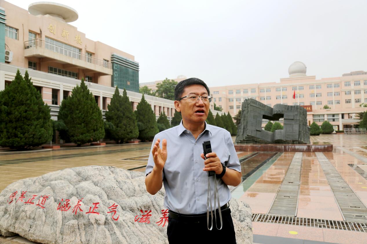 活动伊始,张永宏校长在养正广场向培训班一行介绍了宁夏银川一中以“修养正道,涵养正气,滋养正人”为目标,以“精敬于业、乐融于群、追求卓越”为精神动力的养正文化,讲述了我校从1906年建校至今悠久的办学历程,并追溯至1538年“养正书院”开始绵延四百多年的文脉,展现了学校跨越世纪的“养正文化”底蕴与历史发展。