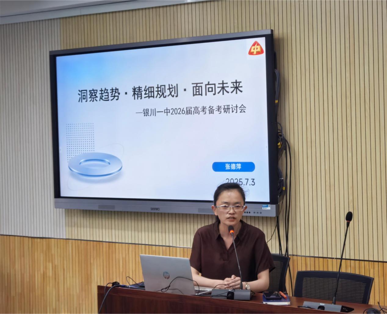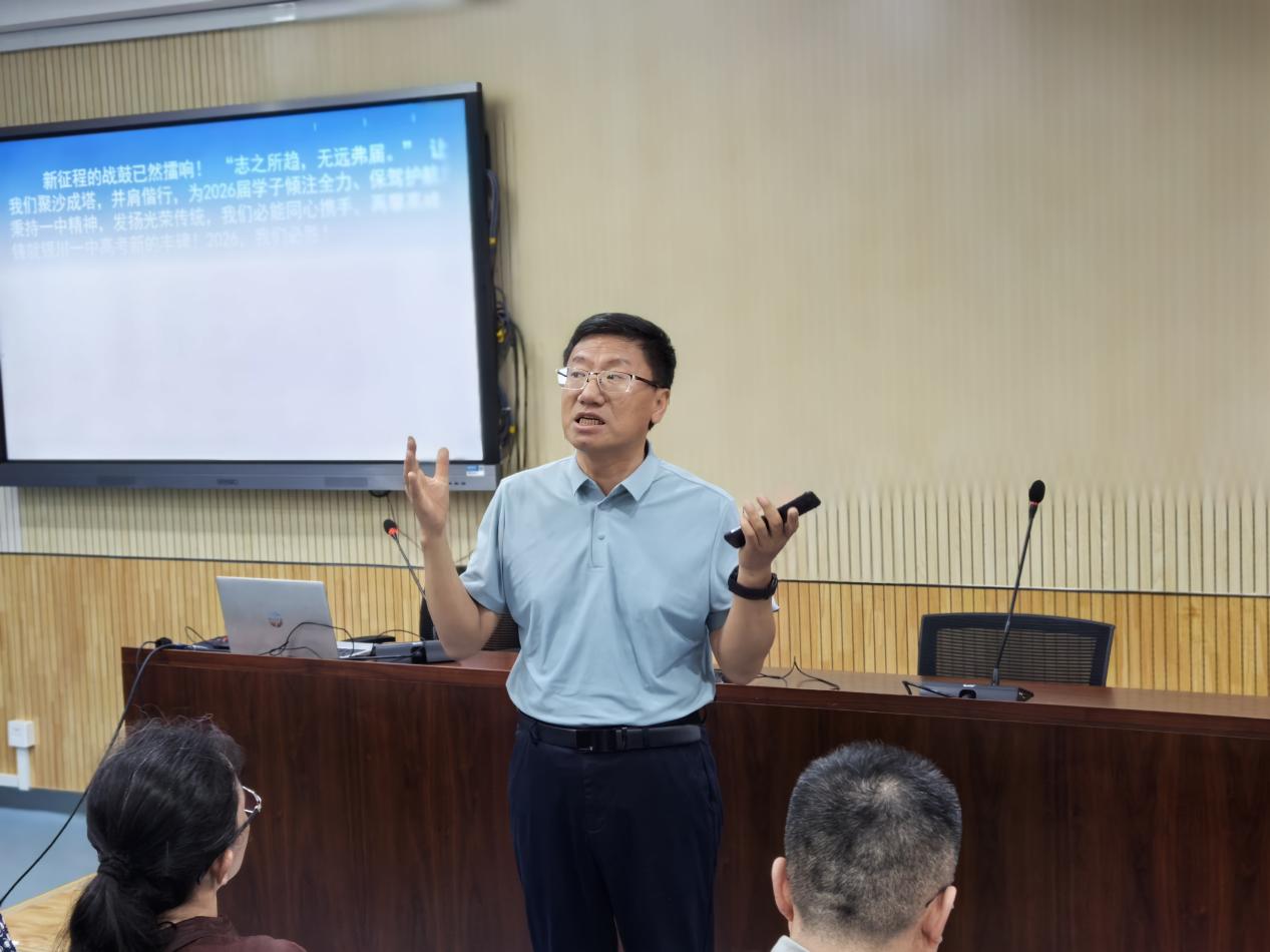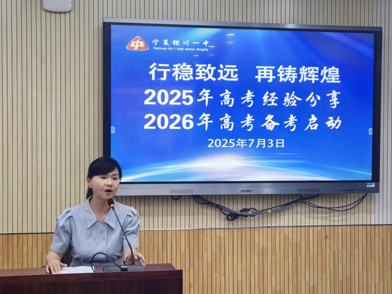 在新课程新教材新高考改革持续推进的大背景下,高考命题趋势、阅卷标准以及备考策略都发生了深刻变化。为助力2026年高三教师精准把握高考动态、科学规划备考路径,切实提升备考效率与质量,宁夏银川一中教科研室、教务处于2025年7月3日晚在学校守正楼二楼学术报告厅举办2025年高考经验分享会暨2026年高考备考启动会,校领导及全体一线教师参加会议。会议由教科研苏雪静主任主持。2025年是宁夏新一轮课程改革以来的第一年高考,这次高考对于宁夏银川一中的意义绝非简单的考试形式变革,而是重塑百年名校育人生态的战略机遇。在学校领导的科学规划和指导下,在全体高三教师的艰苦奋斗中,宁夏银川一中不仅经受住了新高考的考验,更以破局者的姿态书写了西部教育的示范样本。