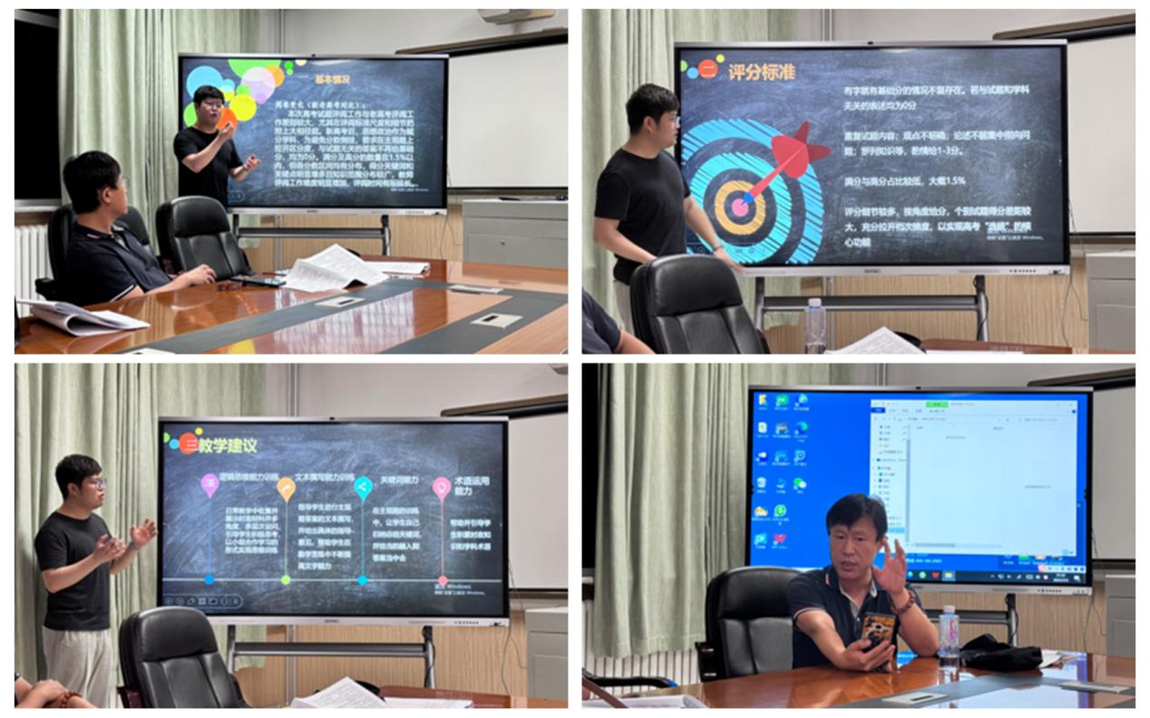 政治教研组的田晓闻老师结合亲身参与的今年高考阅卷实践,分享了深刻的体会。他着重指出,新高考改革对思想政治学科主观题的评阅标准带来了显著变化,整体要求更加严格,更加强调答案的针对性、逻辑性和关键点的精准把握,阅卷教师的评判工作也面临新的要求和挑战。随后,政治教研组长檀向杰老师就备考规划提出建议,强调学生需着重提升逻辑思维、精准表达和学科术语运用能力,避免无效作答。本次会议为优化后续教学与备考策略提供了重要参考。