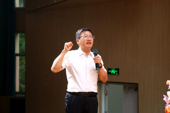 殷殷期许嘱教路,勉育英才报国家。张永宏校长发表致辞,勉励全体一中人践行教育家精神,对标时代发展需求与国家战略部署,始终以学校“养正・唤醒”教育体系为遵循,推动育人实践走深走实。一是要深耕课堂,以硬实力奠定教育高度;二是要精耕个体,以唤醒力点亮成长之路;三是要耘耕细节,以持久力铸就时代栋梁,书写好教育强国建设的“一中华章”。