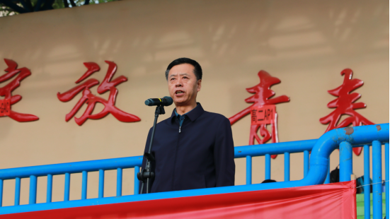 校长张永宏致开幕词。习近平总书记高度重视体育强国建设,他强调:“体育承载着国家强盛、民族振兴的梦想。体育强则中国强,国运兴则体育兴。”同学们要在赛场上全情投入,享受福流;团结奋进,成就友谊;韧性运动,超越自我。让我们在这火红的塑胶场地上享受运动,享受福流,享受友谊,享受超越!