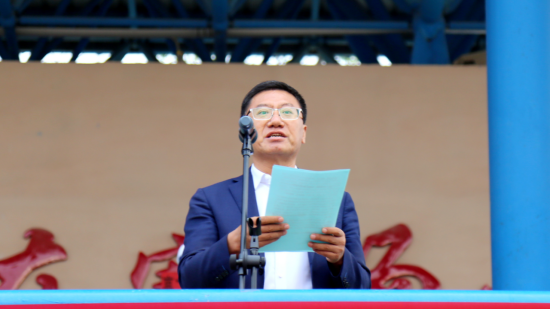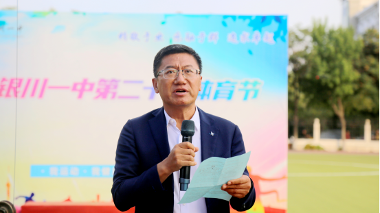 党委书记余维学宣布宁夏银川一中第二十届体育节正式开始。