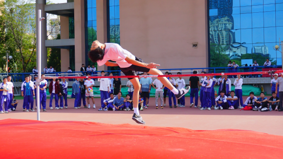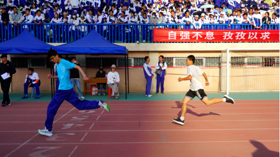 分秒必争勇夺魁,青春意气冲霄汉。短跑赛道,运动员们竭尽全力、奋勇争先、矫若游龙;跳高场上,同学们凌空腾跃、翩若惊鸿;投掷区里,运动健儿抛出优美弧线,彰显力量美学;接力赛上,男女同学团结协作,充分发扬体育精神;看台之上,学生们文明有礼,为所有参赛同学加油助威,将激励之词书写念诵…体育场上的每一道身影都全心全意地投入这场奥林匹克盛宴,只为创造独属于青春的辉煌。