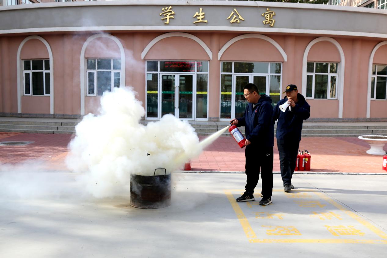 讲解结束后,部分学生使用灭火器进行现场灭火实操练习。