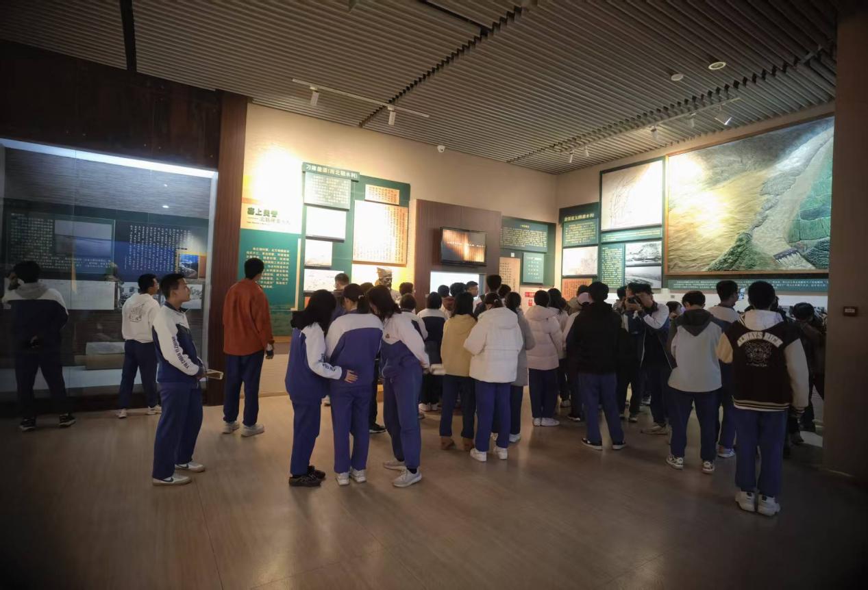 午后的青铜峡水利博物馆,让我们从民族温情转向工程豪情。巨大的沙盘上,蓝色水流沿着灌溉渠铺开,清晰勾勒出“塞上江南”的九大引水脉络。沙盘中央的青铜峡水电站模型,承载着上世纪60年代的建设传奇——来自全国18个省份,多个民族的建设者,他们在戈壁荒滩上战风沙、斗严寒,用十年时间建成了这座黄河上游的关键枢纽。讲解员指着模型,详解水电站如何将黄河水“变”成灌溉良田的甘泉、点亮万家的电流。站在观景台远眺,黄河奔涌过大坝,想象着下游的稻田绿浪翻滚,同学们由衷感叹:“这是各族人民用智慧和汗水筑起的民生丰碑。”