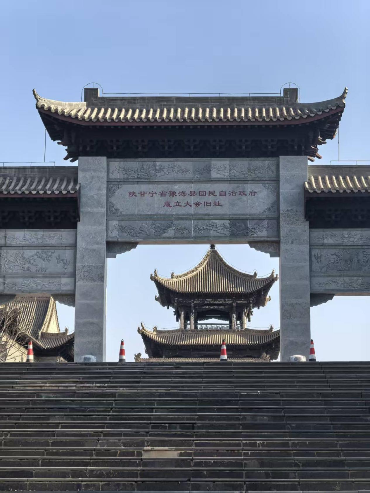 车行两小时至同心县,清真大寺外的古长城遗址让古寺更显庄严。这座始建于元代的寺院,最动人的故事发生在往昔的革命岁月——1936年,红军西征抵达同心,在这里成立了我国第一个县级回民自治政府“陕甘宁省豫海县回民自治政府”,门头上“陕甘宁省豫海县回民自治政府”的红色标语依然鲜亮。寺庙中斑驳的石砖和泛黄的门窗,诉说当年各族群众支援红军时留下的印记。我们从建筑风格见证文化交融,碑文中“回汉一心”字样,不仅是信仰的力量,更是各族同胞同心向党的赤诚。