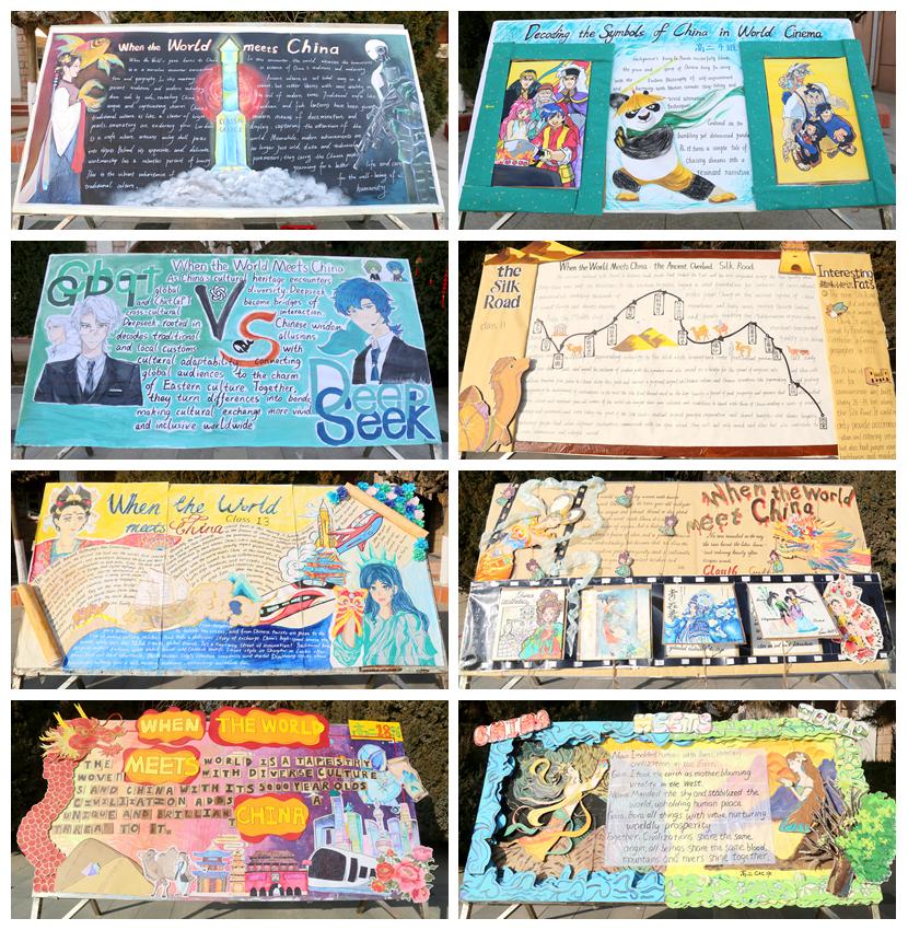 翰墨书英韵,展板绘青春。高二年级英语板报展于校园养正广场拉开帷幕。各班学子以笔为媒、以板为卷,巧思设计出兼具观赏性与知识性的作品。内容上融合丝绸之路、中国神话等文化元素,以英文配手绘插画讲述中外文化交融故事;形式上巧用水彩、拼贴、立体装饰等手法,融入敦煌、龙纹、高铁等中国符号与现代科技元素,实现传统与现代、东方与西方美学的巧妙结合。此次比赛搭建了展示学生英语应用与艺术设计能力的平台,让师生感受中外文化碰撞的魅力,深化对英语文化的理解,激发英语学习兴趣。