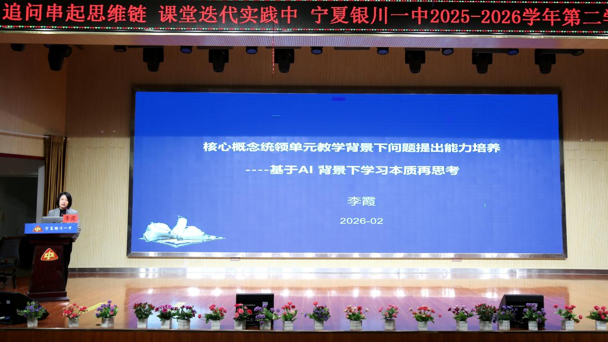 为深入贯彻落实“双新”理念,主动适应人工智能时代教育发展新趋势,着力构建思维型课堂,提升教师专业素养与创新能力,培训活动特邀胡卫平思维型教学专家团队核心成员,特级教师,正高级教师,学校课程与教学博士李霞教授作题为《核心概念统领单元教学背景下的问题提出能力培养——基于ai背景下学习本质再思考》的专题讲座。自治区创新后备人才培育第一共同体学校教师、宁夏银川一中教育集团五百余名教师共同参与学习。