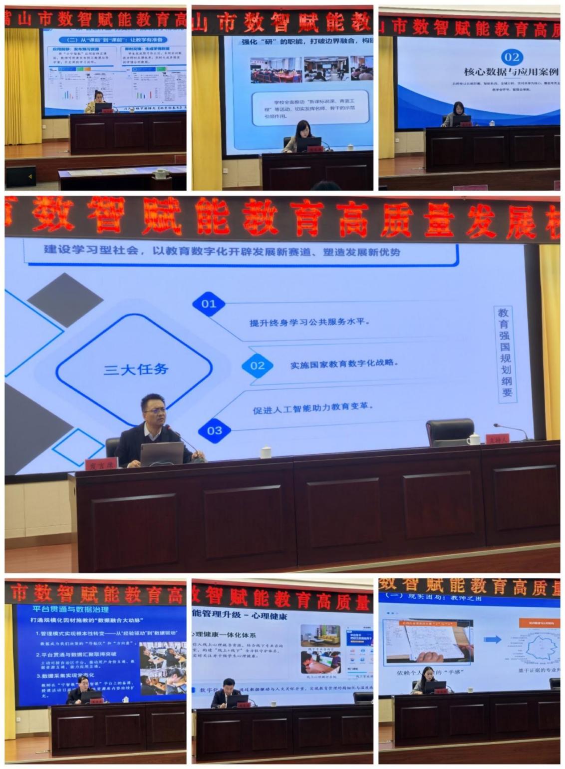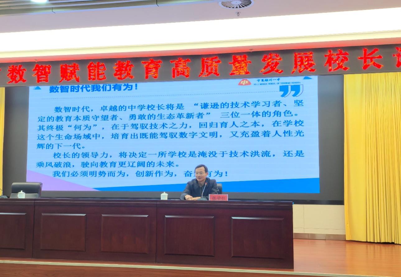 在石嘴山市行政中心举办的张永宏校长工作室第四次论坛交流研讨环节,来自石嘴山惠农小学校长马淑敏、银川阅海小学朱美燕校长、石嘴山八中于颖校长、平罗三中教育集团杨会平校长、银川十五中解玮书记、石嘴山三中张振华校长、银川一中潘雄武副校长依次登台,围绕“数智赋能教育高质量发展”核心主题作专题交流发言。各位发言嘉宾立足自身办学实践,紧扣国家教育数字化战略要求,从数智化课堂教学提质、教育数据治理与平台贯通、心理健康数字化服务、数智家校协同管理升级等多个维度,分享了数字技术与教育教学、校园管理深度融合的落地成果、实践经验与探索思考,内容兼具实操性与前瞻性。其中,潘雄武校长聚焦学习型校园建设作深度分享,系统介绍了学校以数智化手段赋能校园全场景管理的实践路径,通过升级数字化家校管理体系、优化教学教研数字化工具、完善校园全流程数智化服务,助力学习型社会建设,为与会同仁提供了可借鉴的数智化办学范本。